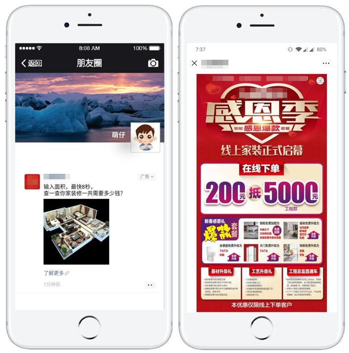 在此情況下,部分家裝企業(yè)推陳出新,將營銷和銷售陣地由線下轉(zhuǎn)移到線上,通過朋友圈廣告推廣強效引流,推出系列優(yōu)惠,引導(dǎo)客戶線上咨詢,線上下單。