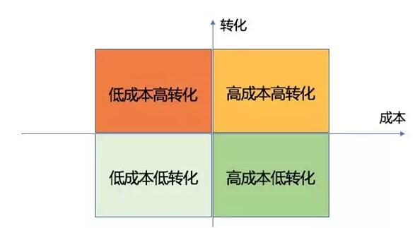 第三象限:消費(fèi)低,轉(zhuǎn)化低。消費(fèi)低說明展現(xiàn)少或被點(diǎn)擊的次數(shù)少,轉(zhuǎn)化低即為流量不精準(zhǔn)。