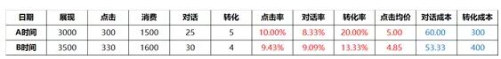 是的,B時(shí)間肯定采用了放量(擴(kuò)大匹配模式)、降價(jià)的操作,因?yàn)檎宫F(xiàn)、點(diǎn)擊、對(duì)話增加了,均價(jià)下來了。