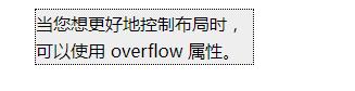 - <div class="div1">當(dāng)您想更好地控制布局時(shí),可以使用 overflow 屬性。overflow 屬性規(guī)定如果內(nèi)容溢出元素框會(huì)發(fā)生什么情況。overflow: hidden超出隱藏不顯示</div>