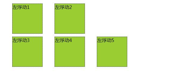 對3號塊取消浮動后。3號塊沒有浮動,4號.5號塊繼續(xù)左浮動。