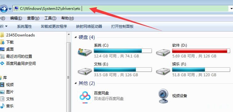 hosts文件位于 C:\Windows\System32\drivers\etc 。復(fù)制路徑,打開桌面上的計(jì)算機(jī)圖標(biāo),地址欄點(diǎn)擊右鍵粘貼并按→。